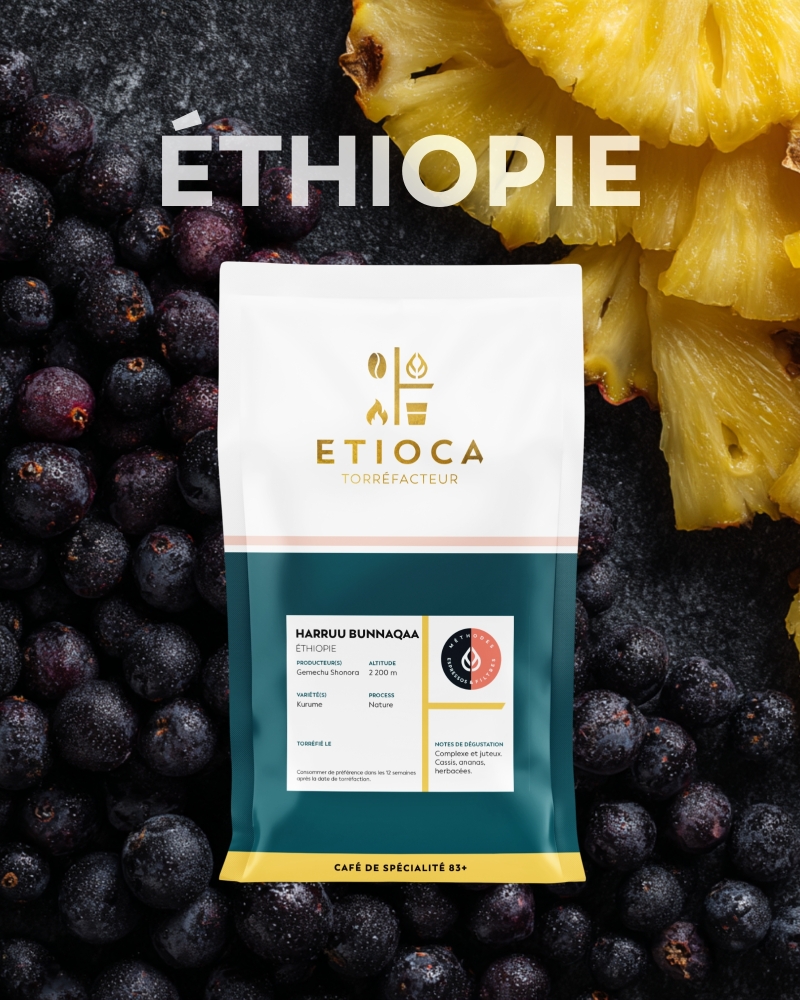 Cultivé à 2 200 mètres d’altitude dans la région de Guji, en Éthiopie, ce café doit sa complexité à un terroir exceptionnel : sols riches, climat frais et variétés locales comme le Kurume. Le producteur, Gemechu Shonora, perpétue une tradition régionale ancestrale, en travaillant exclusivement en process naturel. Ce mode de transformation permet de révéler une palette aromatique vivante, avec des profils souvent floraux, épicés, ou herbacés. Chaque lot exprime une identité forte, reflet du travail minutieux et de la richesse du Guji.
