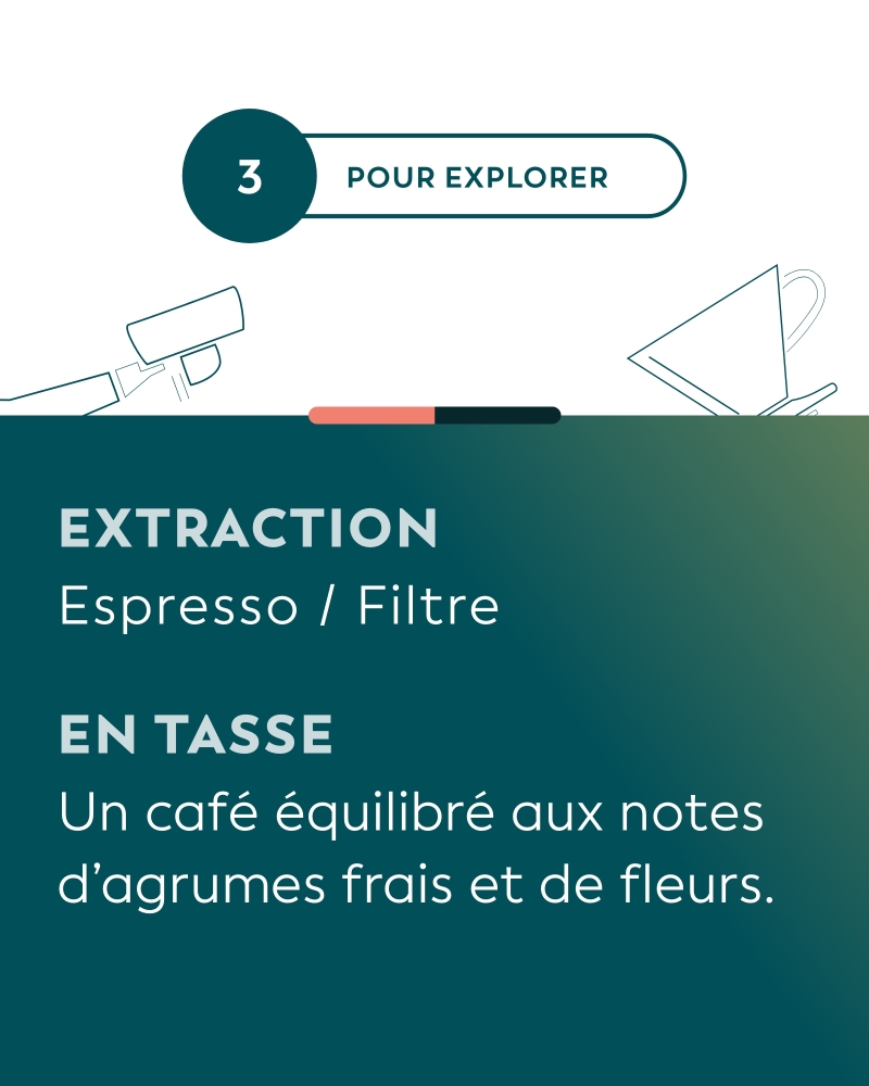Un café équilibré aux notes d’agrumes frais et de fleurs.